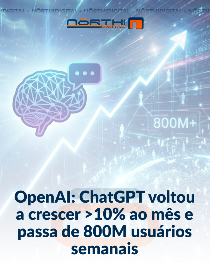 26 fev INTERNET, NÔRTHIDIGITAL Crescimento acelerado da IA e o impacto global do ChatGPT 02/26/2026 By admin A OpenAI revelou um novo marco impressionante: o ChatGPT voltou a crescer mais de 10% ao mês e já ultrapassa a ma...Continue reading