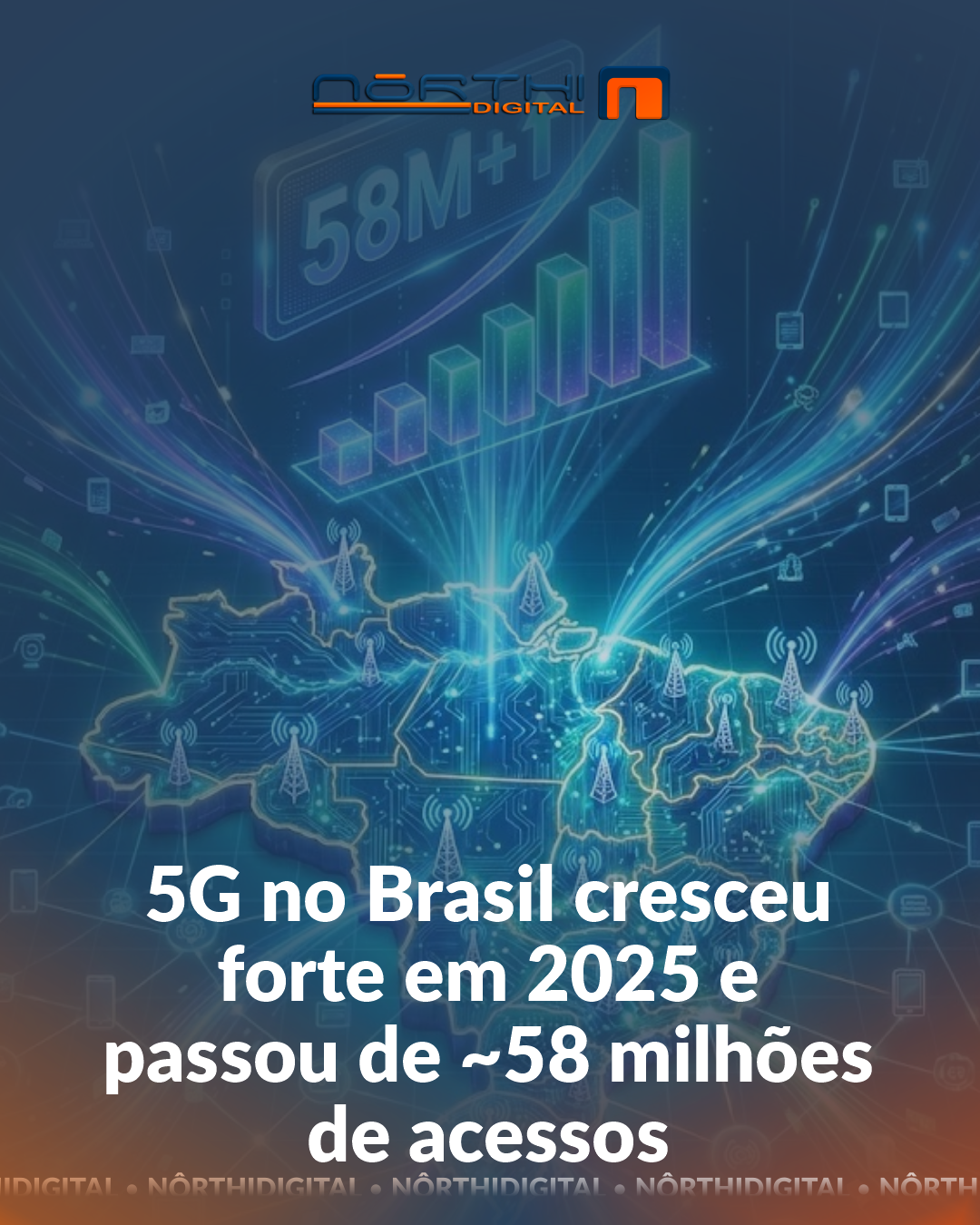 O 5G no Brasil segue acelerado. Em 2025, o país ultrapassou 58 milhões de acessos, mostrando como a tecnologia de quinta geração está cada vez mais presente na vida das pessoas.